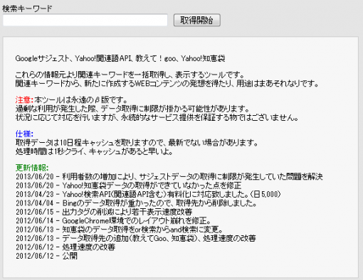 このツールにキーワードを入れると、関連キーワードを取得してくれます。