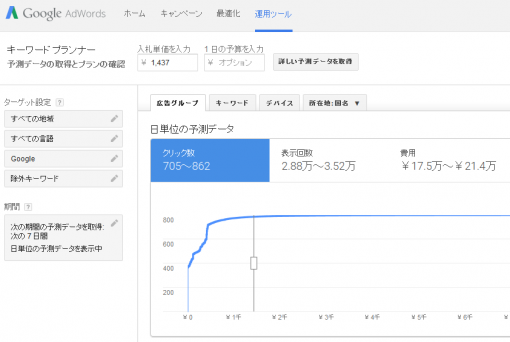 これを使って、どこの地域で、どんなキーワードで、月間どのくらいの検索があって、幾らくらいの金額が必要なのかというのが分かります。